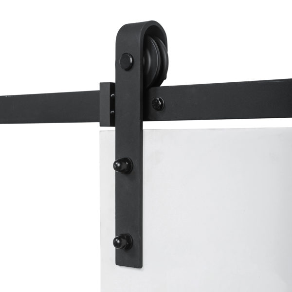 • Optional adjustable wall mounted floor barn door guide installs directly onto the wall or baseboard which requires no drilling into your floor