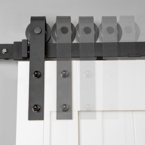 When wall space is an issue, the bypass kit will allow two barn doors to independently travel across two tracks and not require extra clearance. The double barn door hardware kit allows for one door to slide over another making it perfect for closets, pantries, or possibly even multiple openings on the same wall.