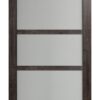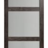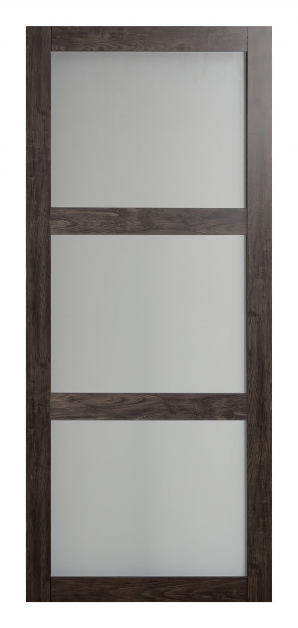 Presenting a modern look that balances daylight and privacy, our 3-Lite Hall Barn Door offers the perfect passageway for more than hallways and closets. Imagine the possibilities of this translucent look on display in your kitchen, living room or home office. Our horizonal, 3-Lite, tempered frosted glass design is framed in solid engineered wood, pre-finished for durability in a choice of colors and appointed with Rustic Matte Black hardware. This modern barn door provides dependable, smooth operation and its trackless design maintains clear, hazard-free floor openings.